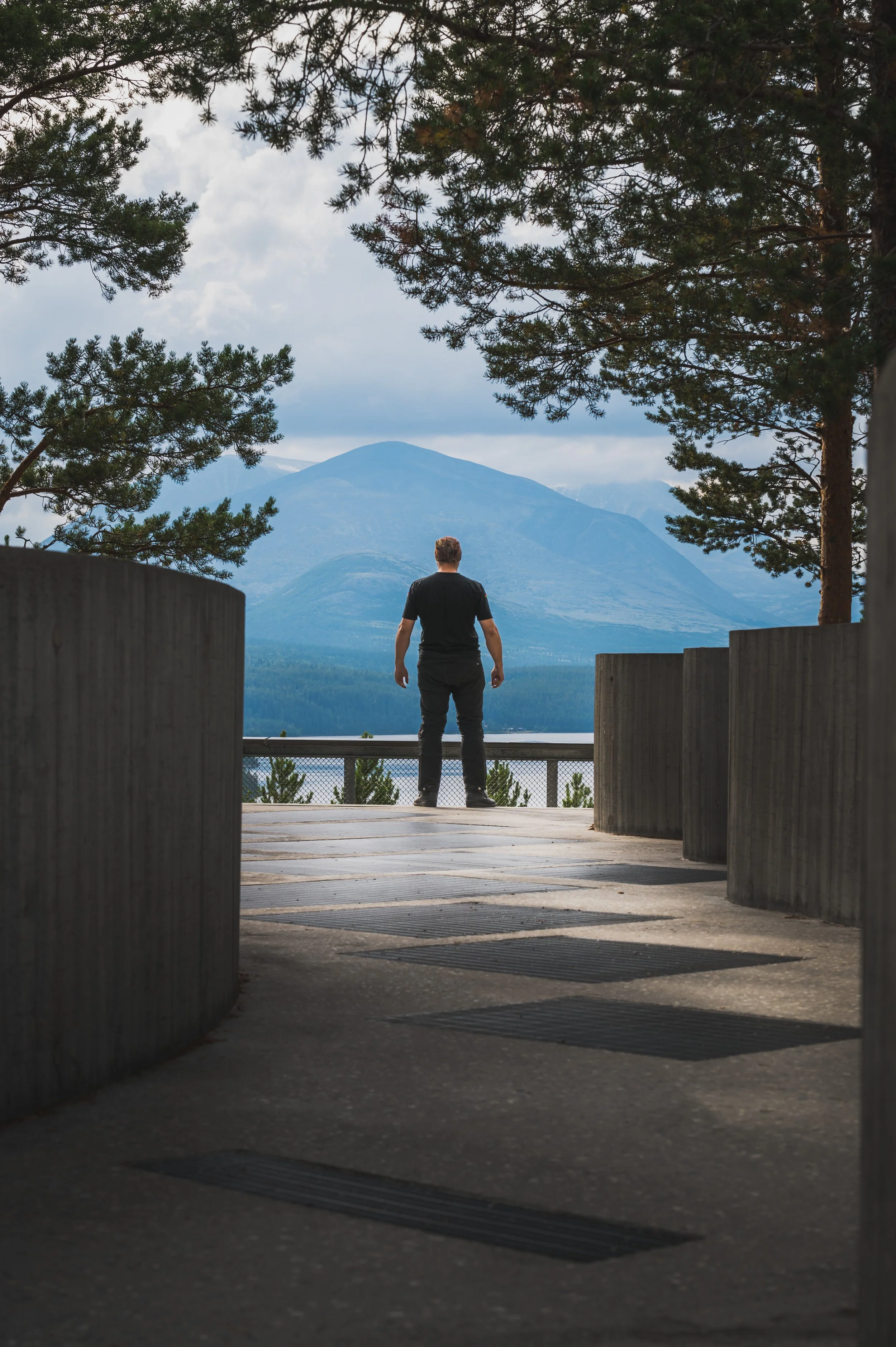 Am Abend, ich befinde mich jetzt in der Nähe von Otta, fahre ich noch auf den 1617m hohen Blåhøe mit seinem bekannten Funkmast obendrauf. Kurz vorher hat es geregnet und so habe ich eine aufregende Fahrt über die steile Schotterstraße nach oben. Die Reifen haben kaum noch Grip und drehen das ein oder andere Mal durch. Letzten Endes schaffe ich es aber nach oben und genieße vollkommen alleine einen der besten Ausblicke, den ich jemals hatte. Die Abfahrt wird spannend, aber ich meistere sie ohne Sturz.